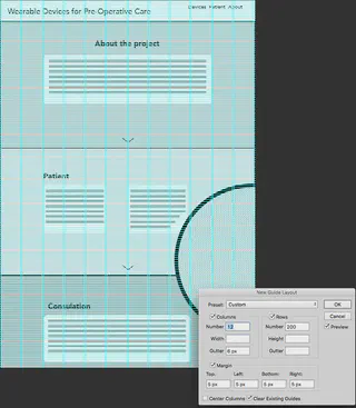 This post shows the initial low fidelity wireframe that I created after meeting with Dr. Theo Fotis on 16/11/16. I decided on a 12 column layout due to the need to have different formats in each section. It seemed to offer a high degree of flexibility.